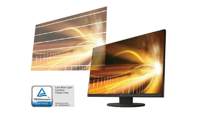 Flimmernde Bilder verursachen müde Augen. Die Monitore der FlexScan-Serie hingegen nutzen eine von EIZO entwickelte Hybrid-Technologie. Sie regulieren die Helligkeit so, dass der Benutzer kein Flimmern wahrnimmt und somit keine müden Augen entstehen. Dies geschieht ganz ohne Kompromisse bei der Farb- und Bildqualität.