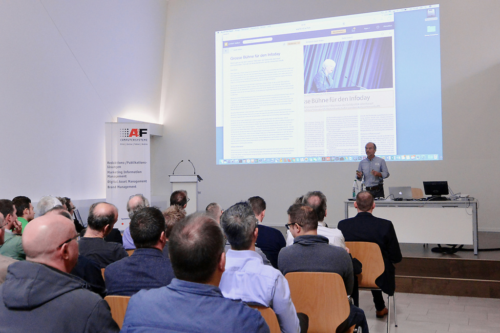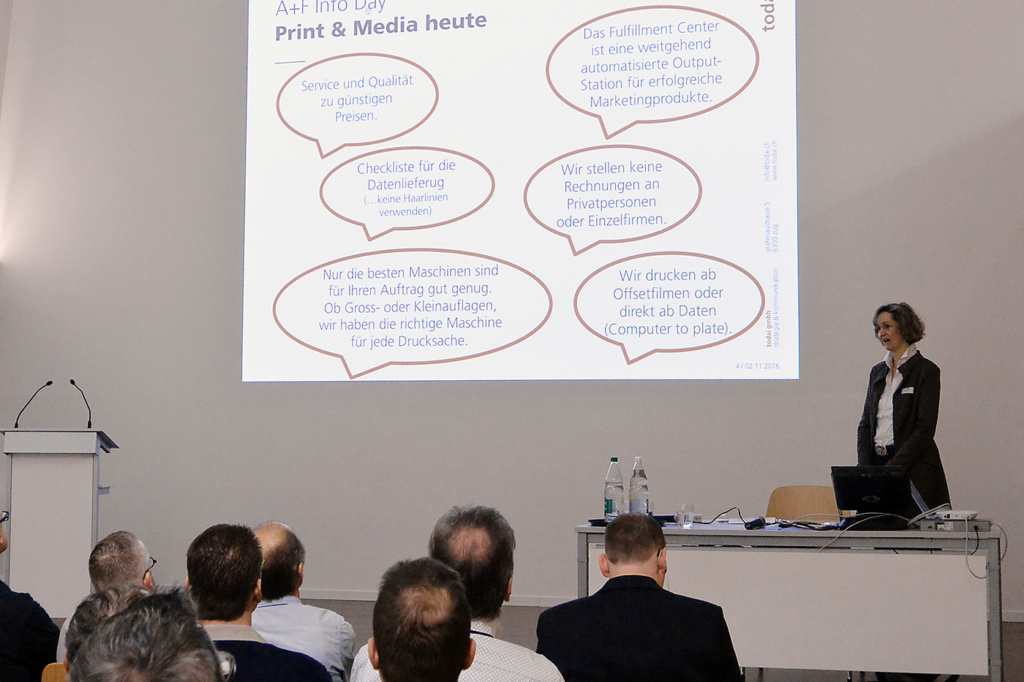 Volles Haus am A&F Infoday. Das Thema: Wirkungsvolle Kommunikation und wie Technologien die Herstellungsprozesse vereinfachen oder gar beschleunigen. Das Wichtigste für Sie zusammengefasst.